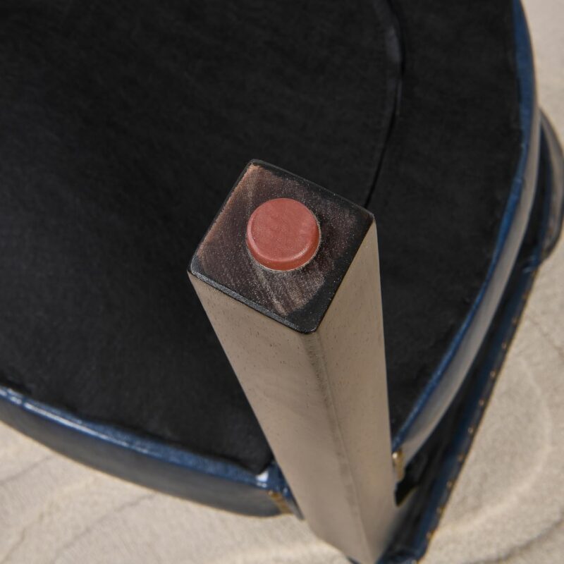 Tattva Woods Arm Chairs with Upholstered and Arms,Office Desk Chair with Metal Rivets. PU Boss Captain’s Chairs,Classic Accent Stools for Dining Room, Bedroom Brown Legs & Dark Blue NX173-318LB