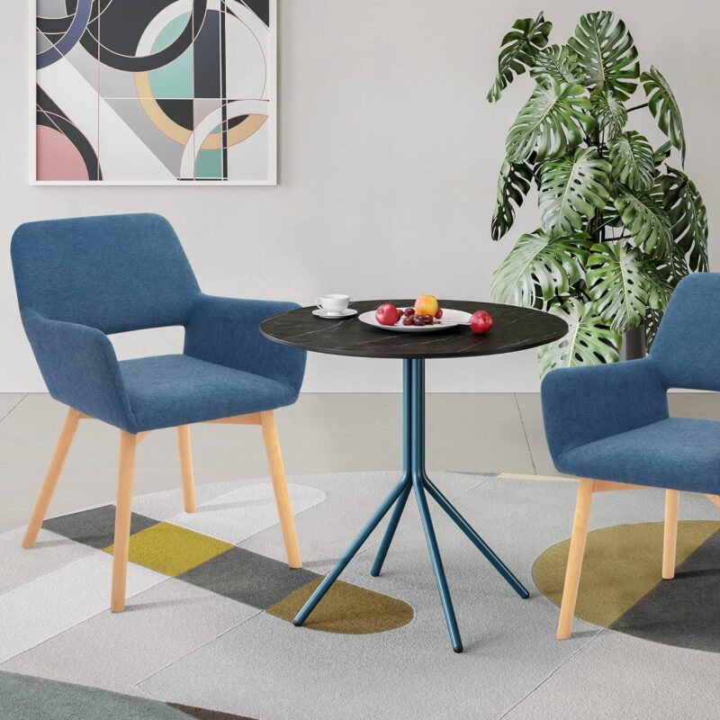 Tattva Woods Fabric Cushion Leisure Modern Living Dining Room Accent Arm Chairs Club Guest with Solid Wood Legs, Set of 2, Blue