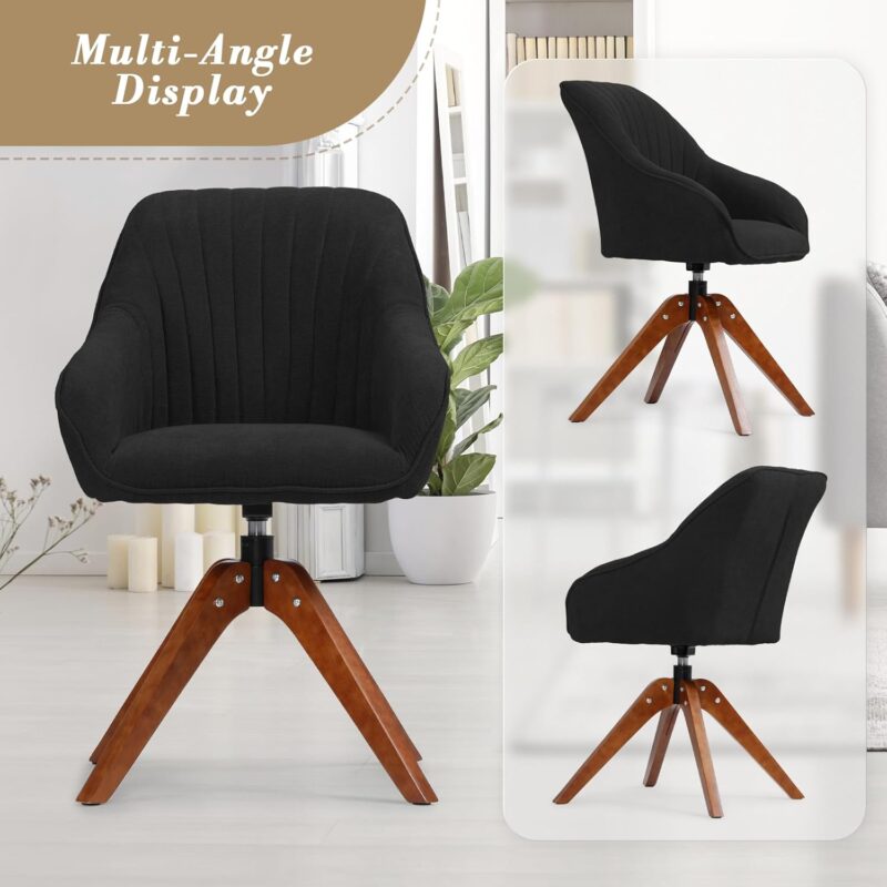Tattva Woods Collection Modern Accent Chair, Comfy Swivel Reading Chair for Adults, Soft Upholstered Fabric Armchair with Wooden Legs for Living Room, Bedroom, Dorm, Office, Black