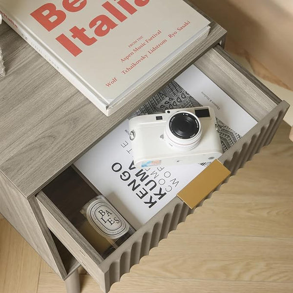 Be the first to review “Mid Century Modern Nightstand, Wood Bedside Table with Drawer and Opening Storage, End Table Living Room Fluted Night Stand with Solid Wood Legs for Bedroom” Cancel reply