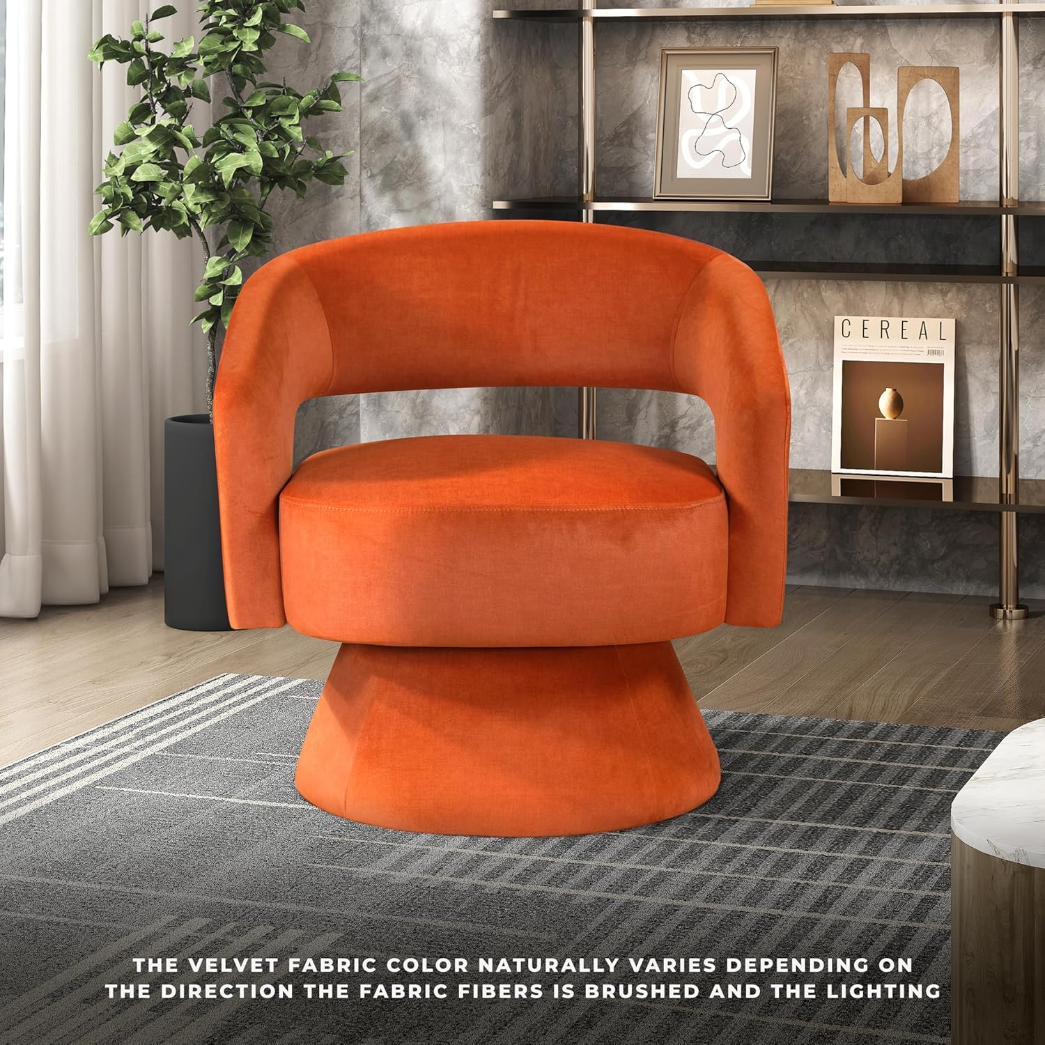 Tattva Woods 360 Degree Swivel Accent Chair, Modern Comfy Velvet Round Barrel Chair, Open Back, Plush Foam Cushions, Metal Swivel Base for Living Room/Bedroom/Office, Orange