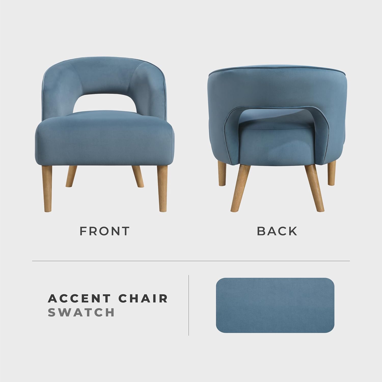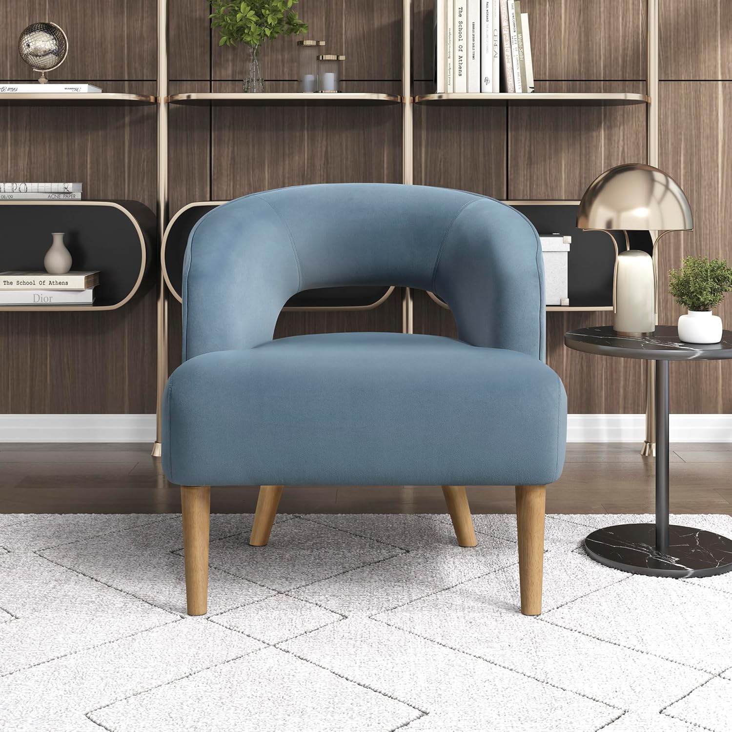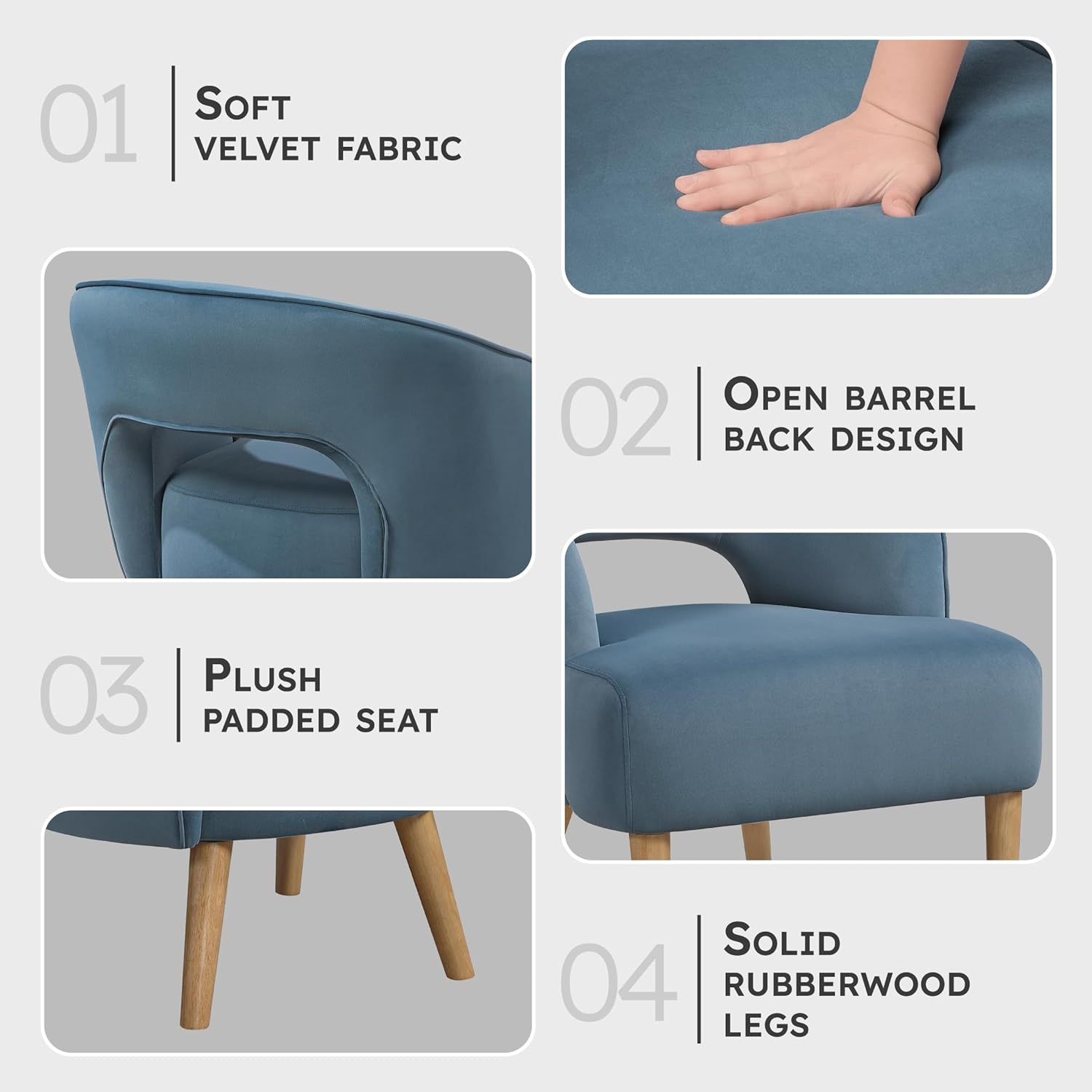 Tattva Woods Accent Arm Chair, Modern Comfy Velvet Accent Chair, Open Back with Solid Wood Legs for Living Room/Bedroom/Office/Waiting Room, Blue