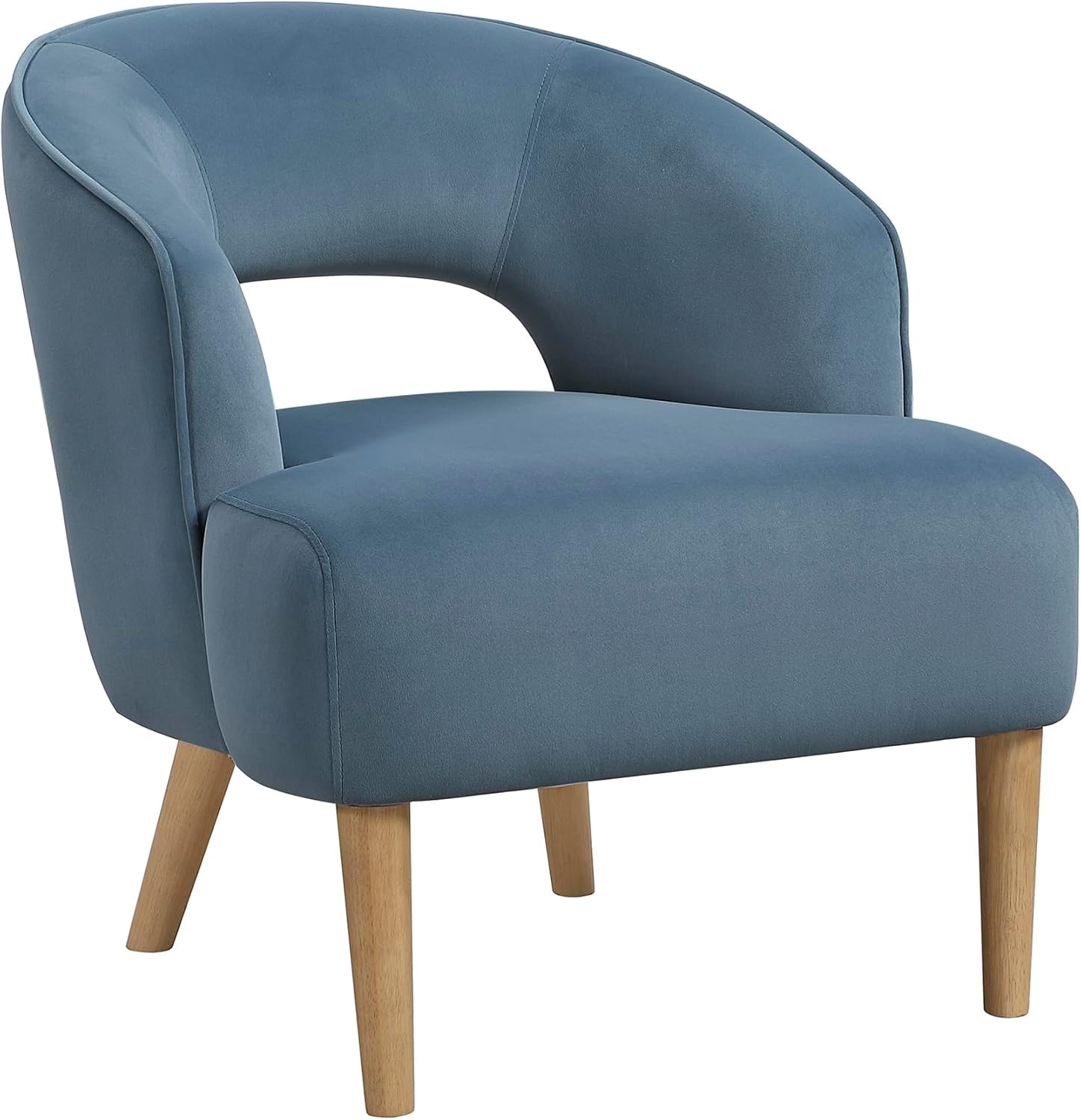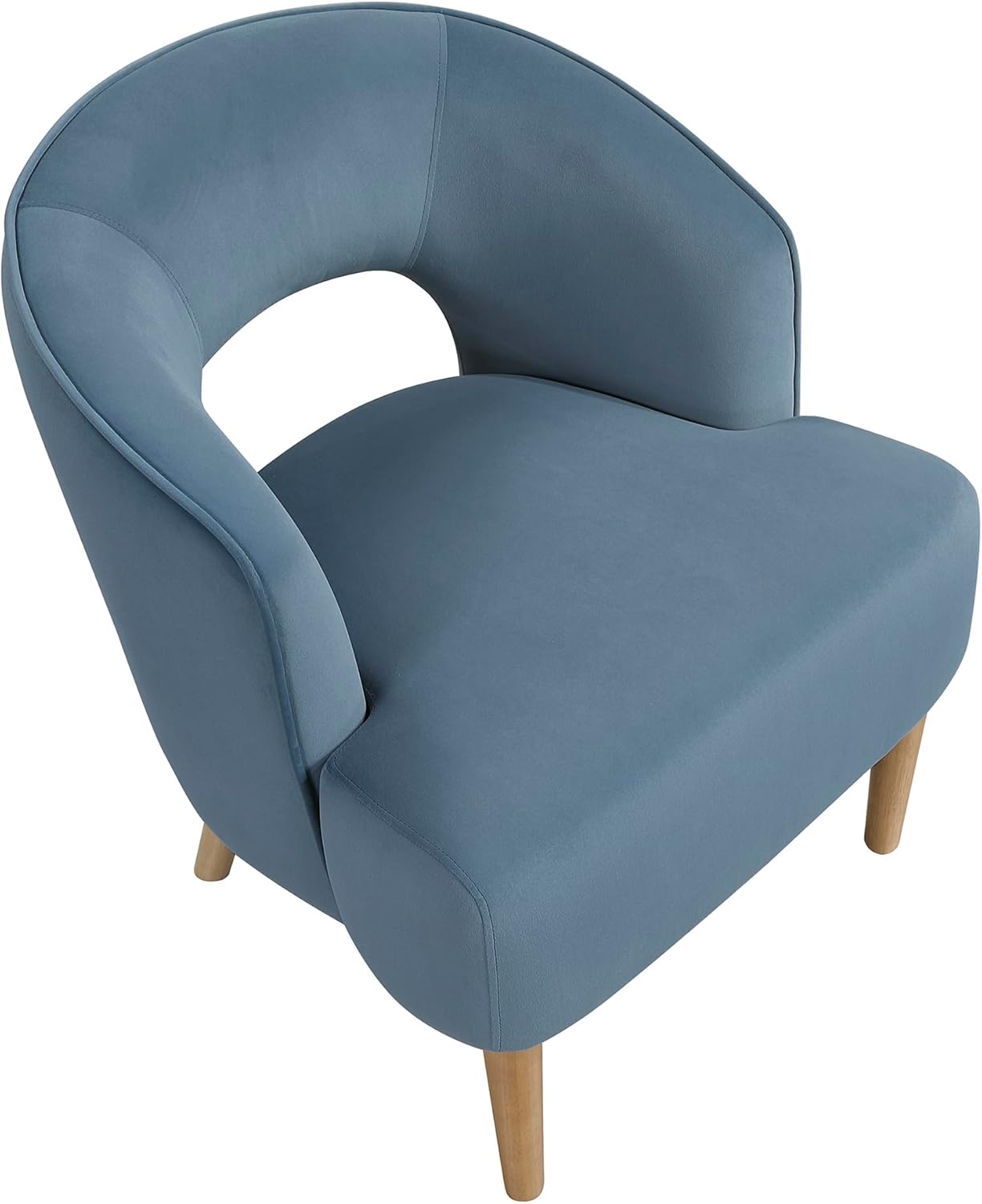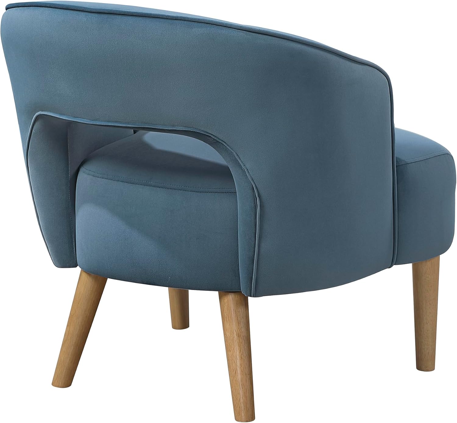 Tattva Woods Accent Arm Chair, Modern Comfy Velvet Accent Chair, Open Back with Solid Wood Legs for Living Room/Bedroom/Office/Waiting Room, Blue