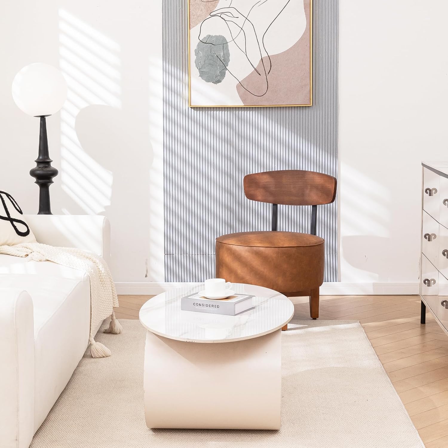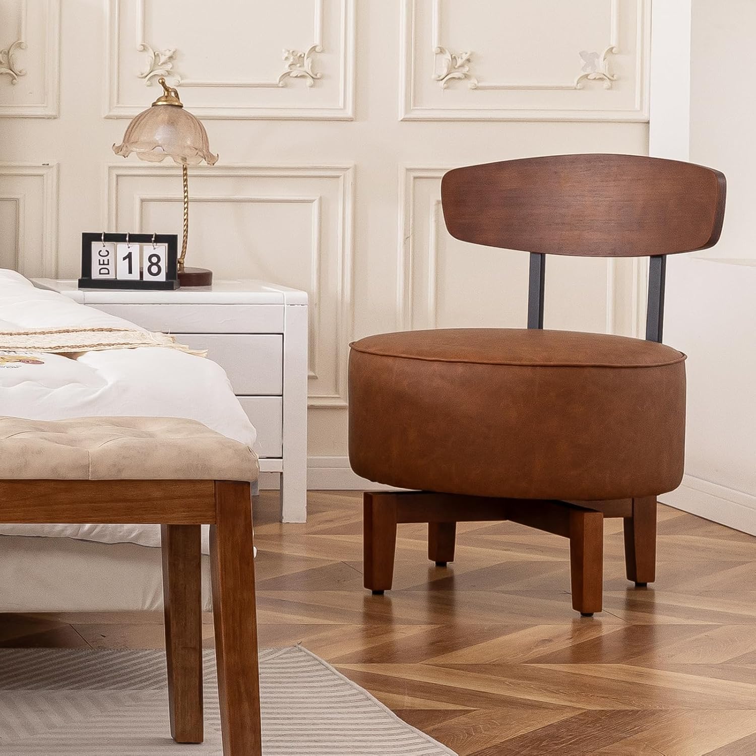 Tattva Woods-Swivel Accent Chair Living Room Chair with Back, upholstered Wood mid Century Modern Chair for Bedroom Office, Faux Leather Cognac Brown