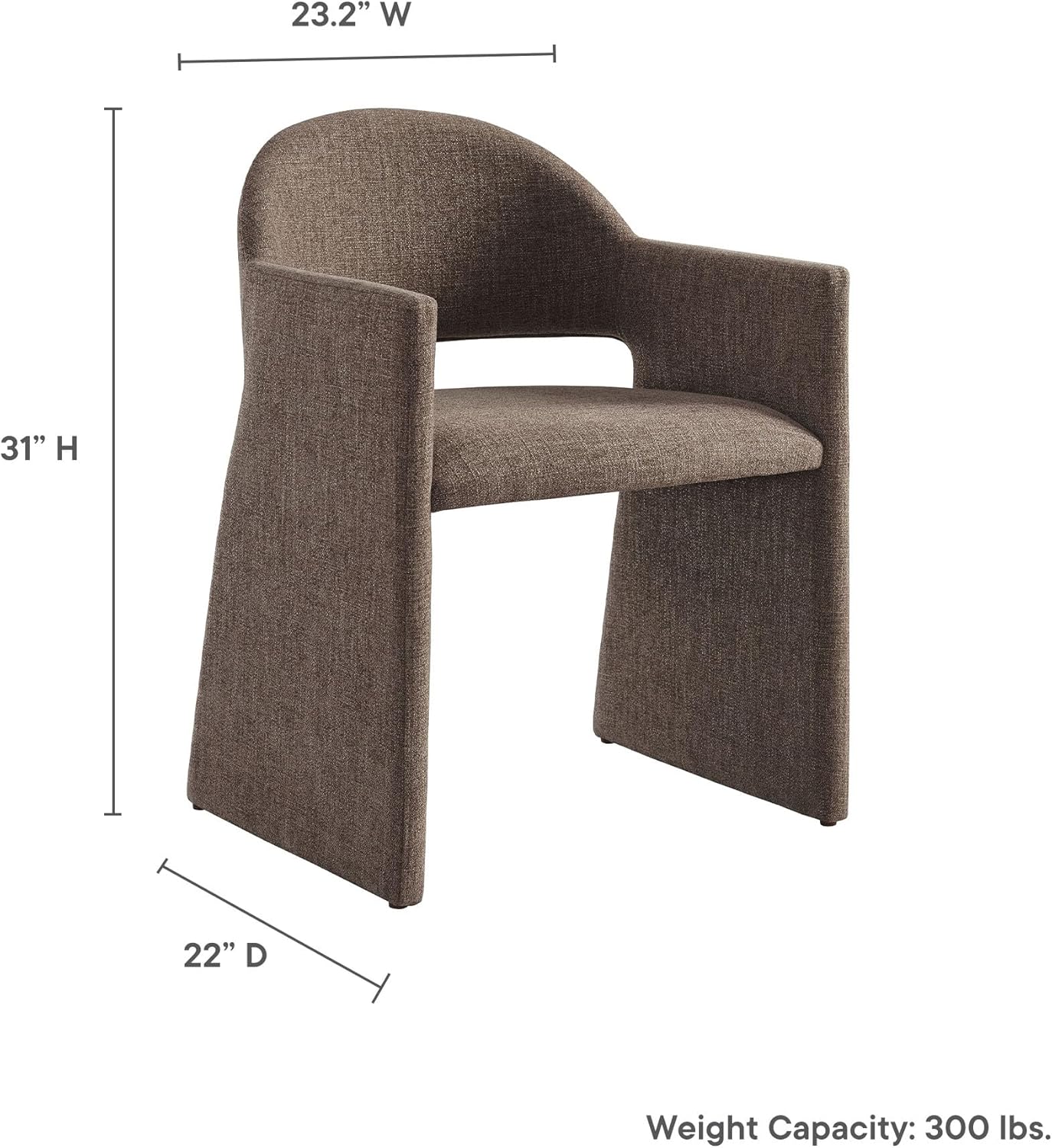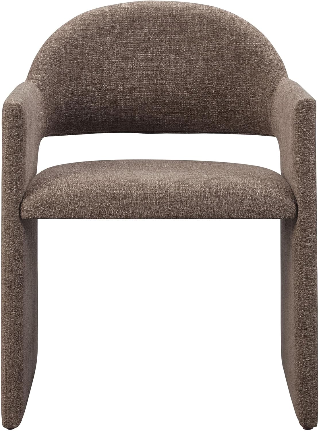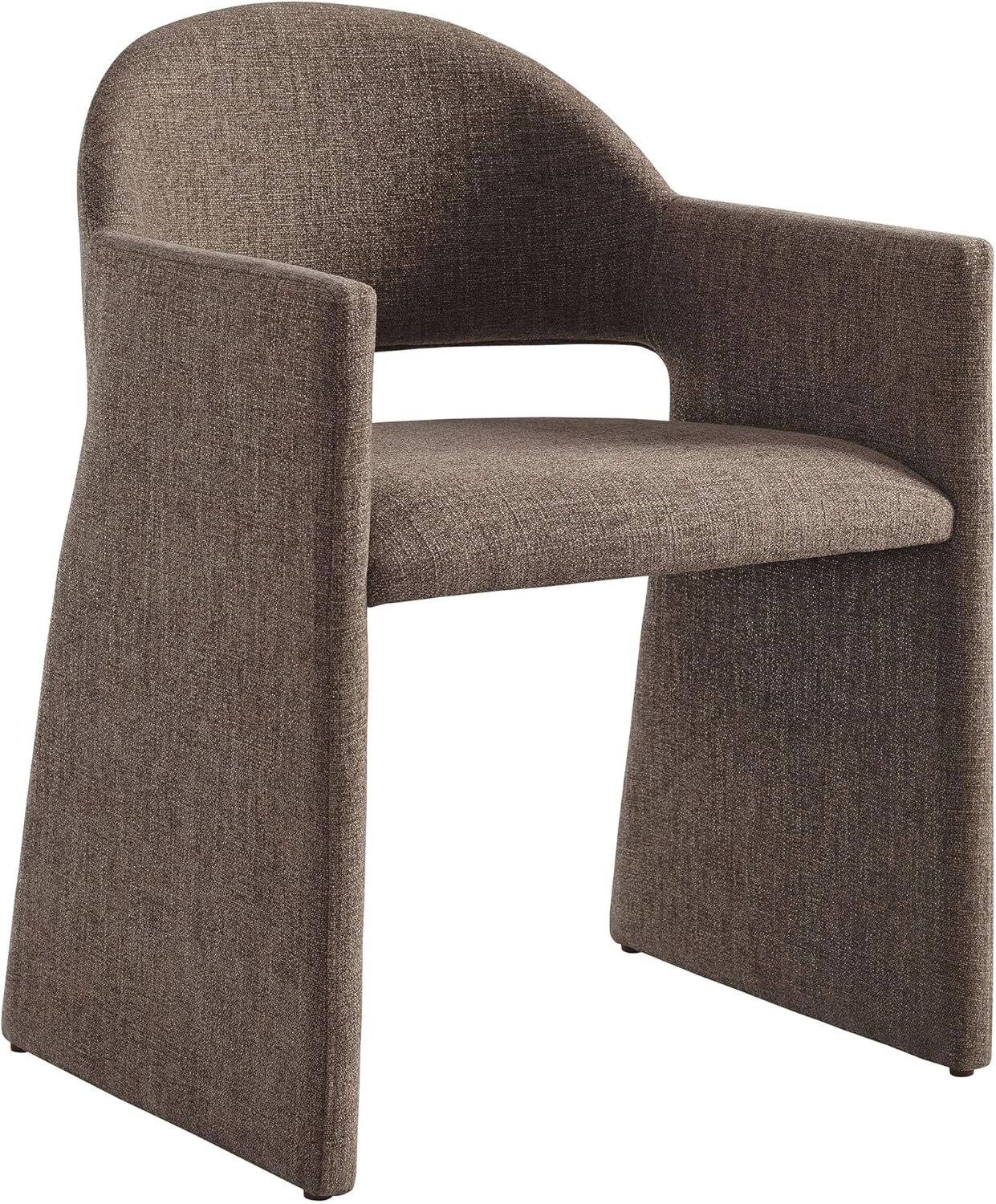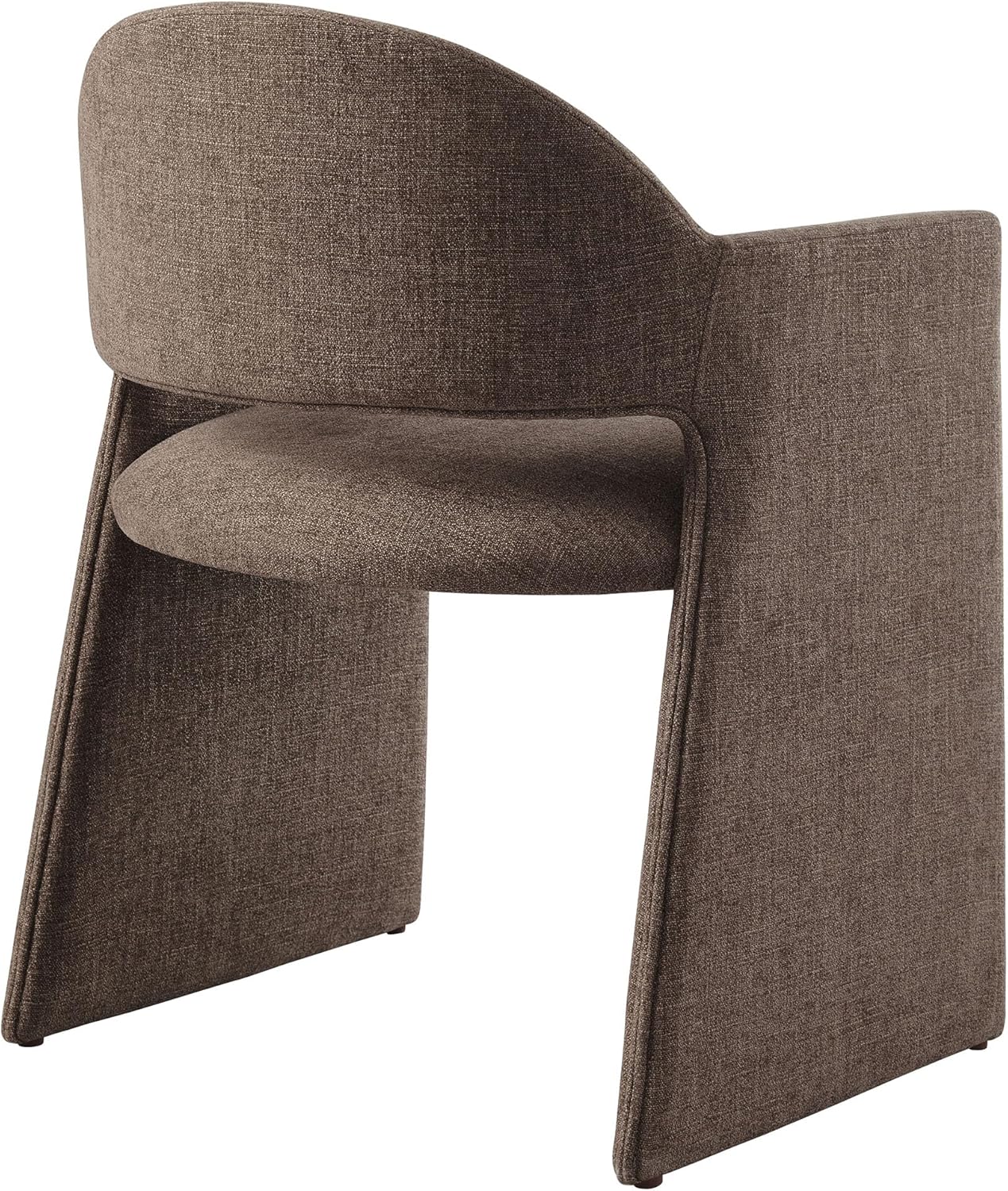 Tattva Woods Upholstered Fabric Dining Armchair in Mocha – Modern Curved Dining Chair with Open-Back – Living Room Barrel Lounge Chair – Single Upholstered Accent Chair with Arms