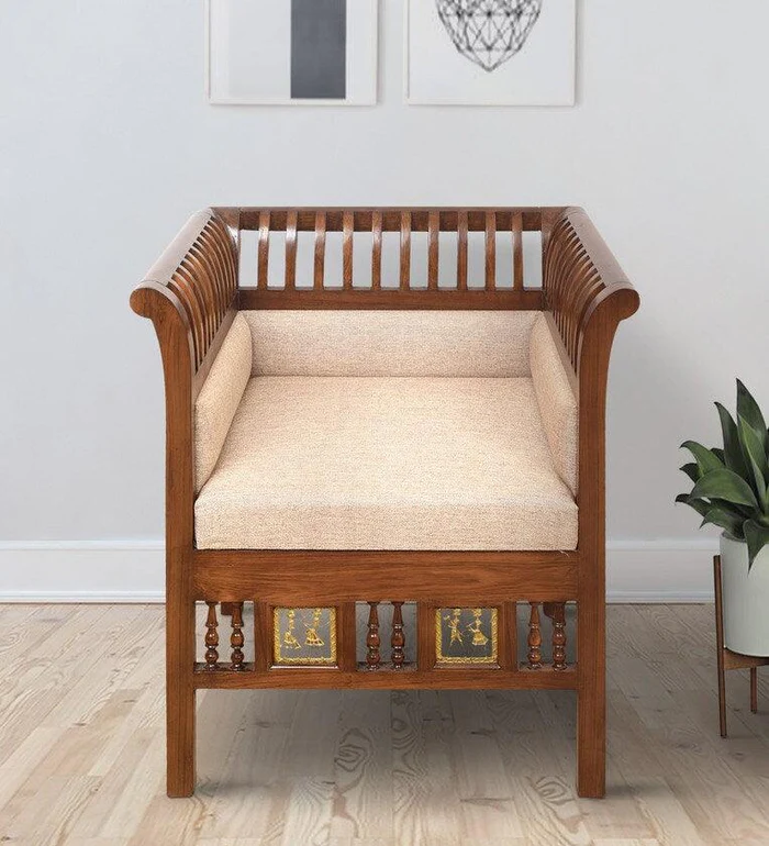 Solid Wood 1 Seater Sofa in Walnut Colour